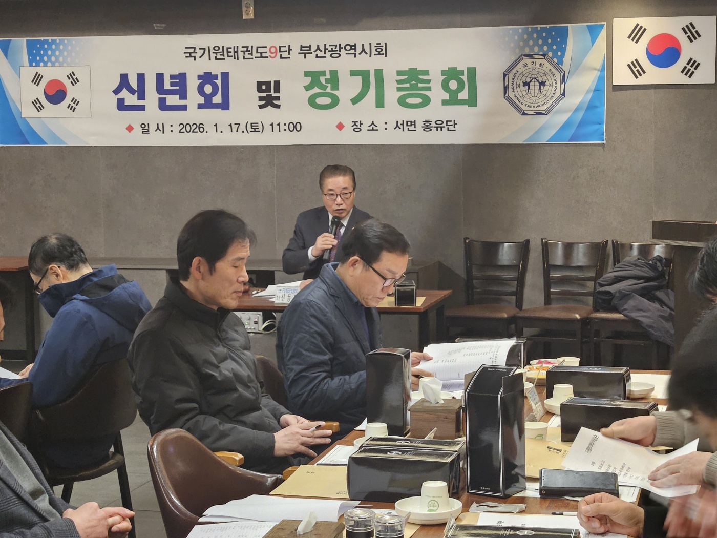 국기원 태권도9단부산광역시회 회장 신동점신년회 및 정기총회 개최일시: 2026년 1월 17일(토)장소: 서면(홍유단)