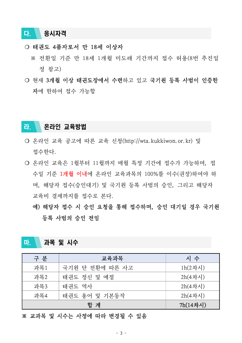[국기원] 2026년도 4품 4단 전환 보수교육(온라인 교육) 모집요강