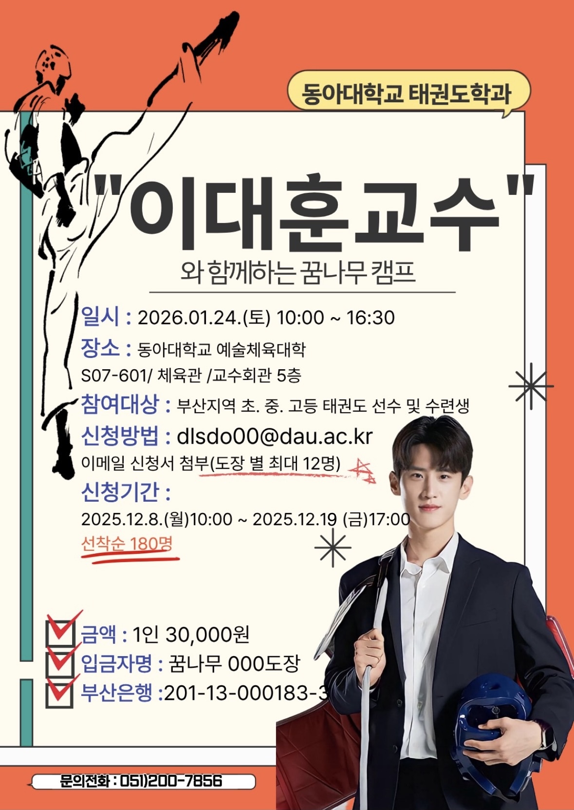 동아대학교 태권도학과 이대훈교수와 함께하는 꿈나무 캠프 안내