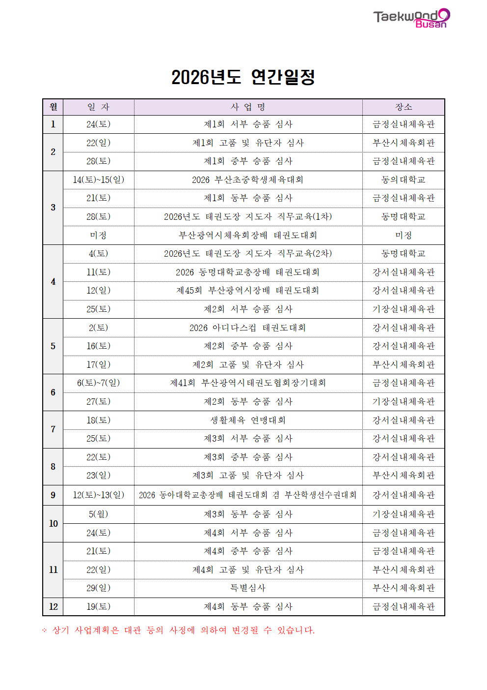 - 태권도 소식