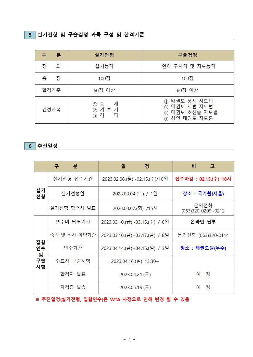 제32기 2급 국제태권도사범 자격과정 실기전형 및 집합연수 안내
