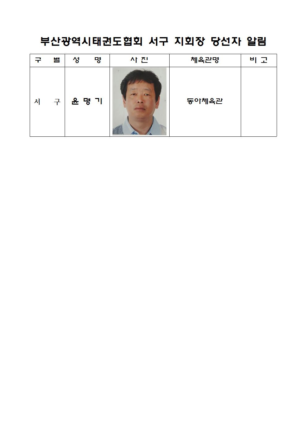 <선관위>부산광역시태권도협회 서구지회 당선자 알림