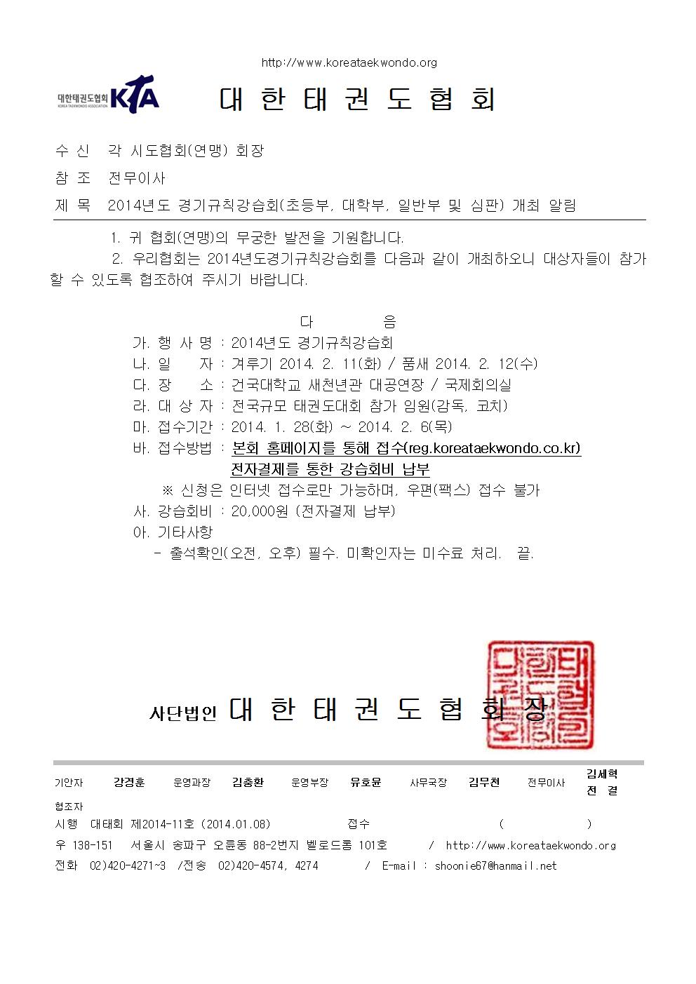 (KTA)2014년도 경기규칙강습회(겨루기,품새) 알림
