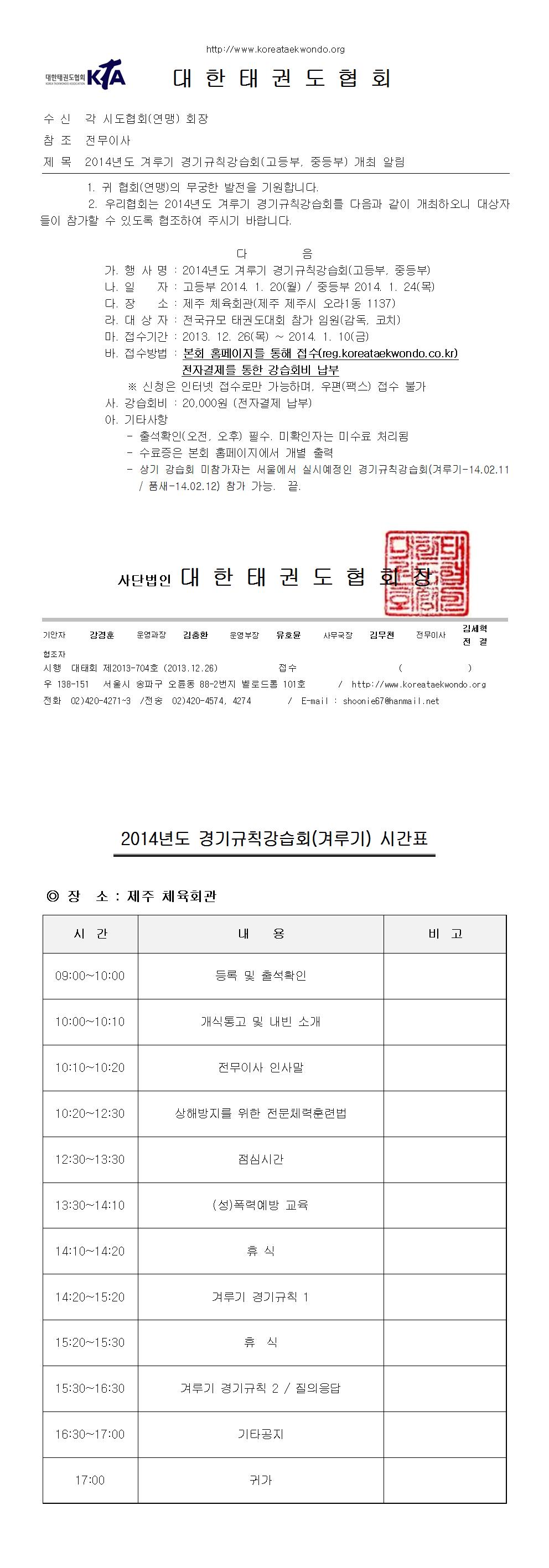 - 제목 (KTA)2014년도 겨루기 경기규칙강습회(고등부,중등부) 알림