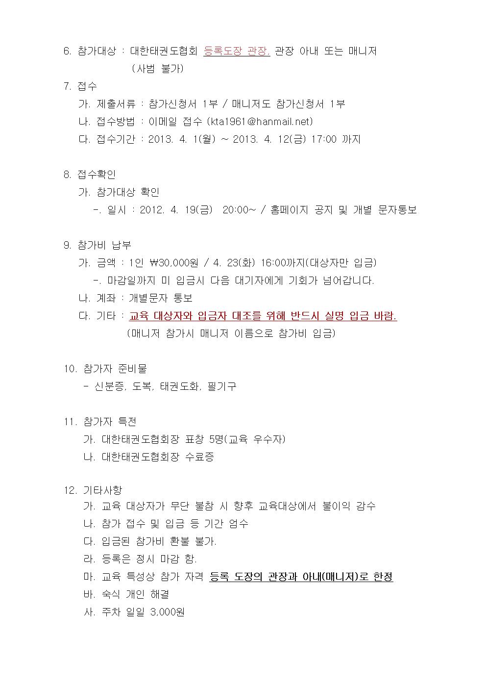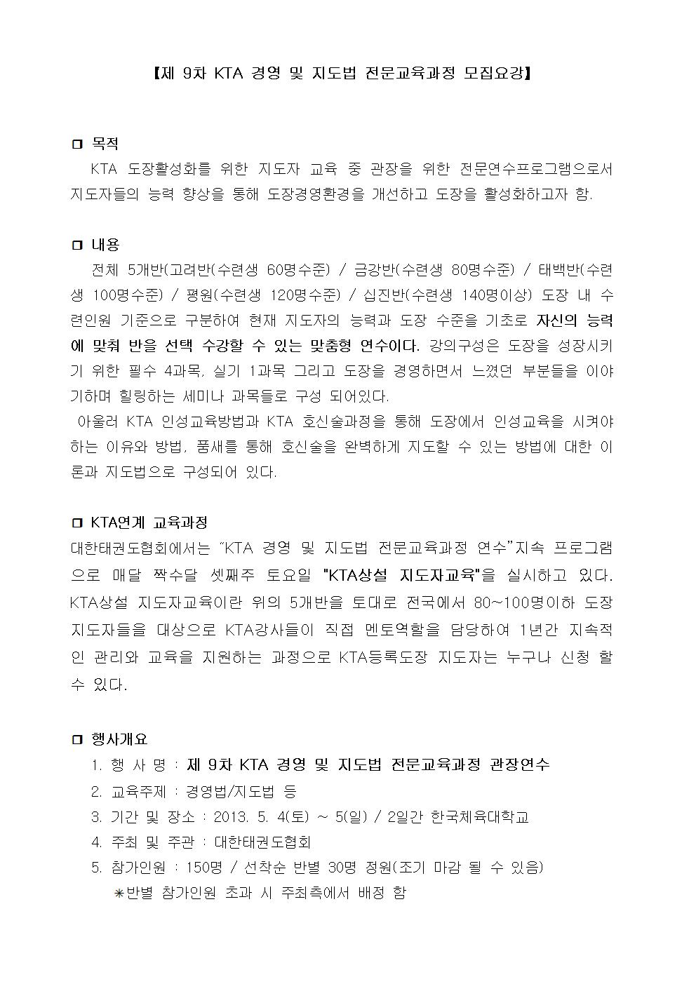 제9차 KTA 경영 및 지도법 전문교육과정 모집 안내