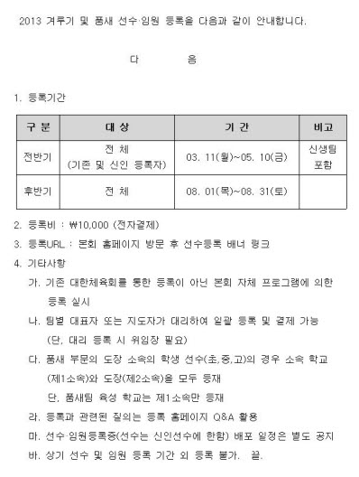 <전국대회 참가 - 2013년도 겨루기·품새 선수 및 임원등록>