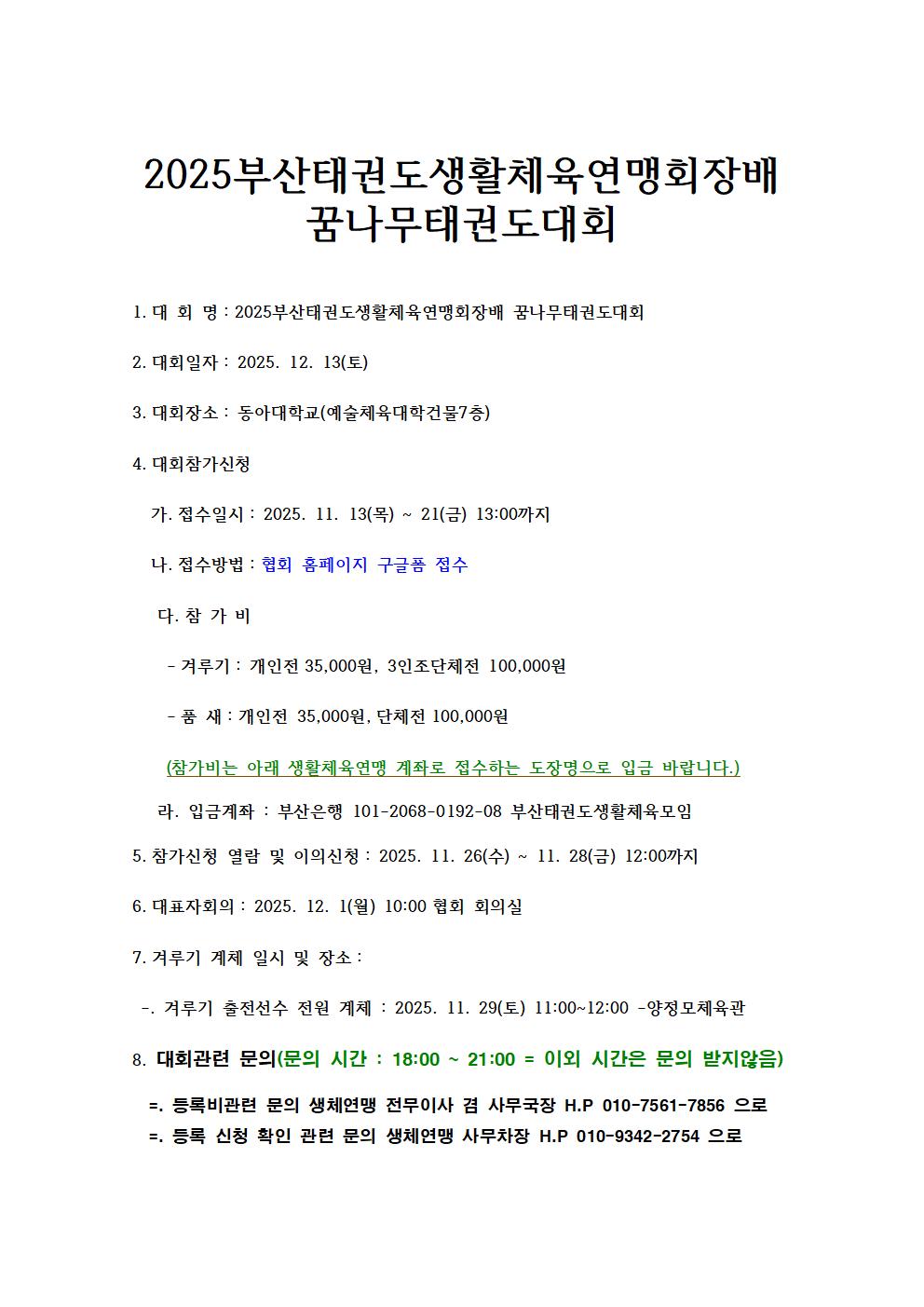 - 2025부산태권도생활체육연맹회장배 꿈나무태권도대회